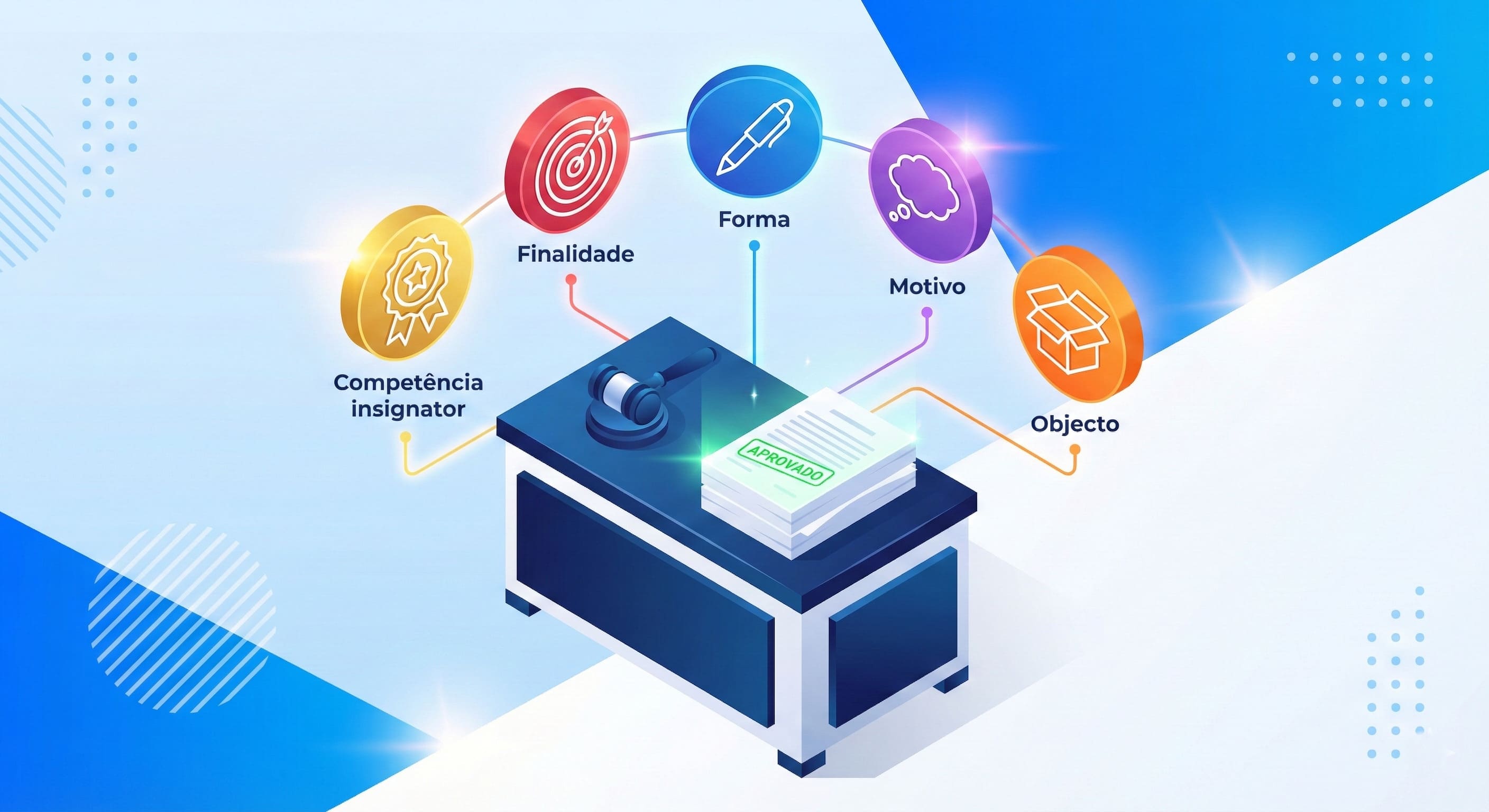Diferente de um contrato (que é bilateral, exige acordo de vontades), o ato administrativo se impõe. Se um guarda de trânsito lhe aplica uma multa, ele não pergunta se você concorda. Ele emite um ato que cria uma obrigação para você. Para que esse "superpoder" do Estado não seja abusivo, a lei exige que ele seja construído sobre cinco pilares inabaláveis. Se faltar um, o ato desmorona.