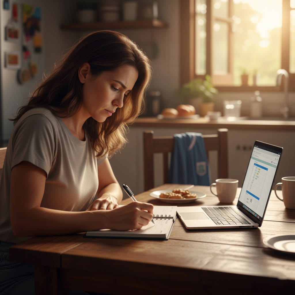 [INSERIR IMAGEM 3: MÃE PLANEJANDO A ROTINA]