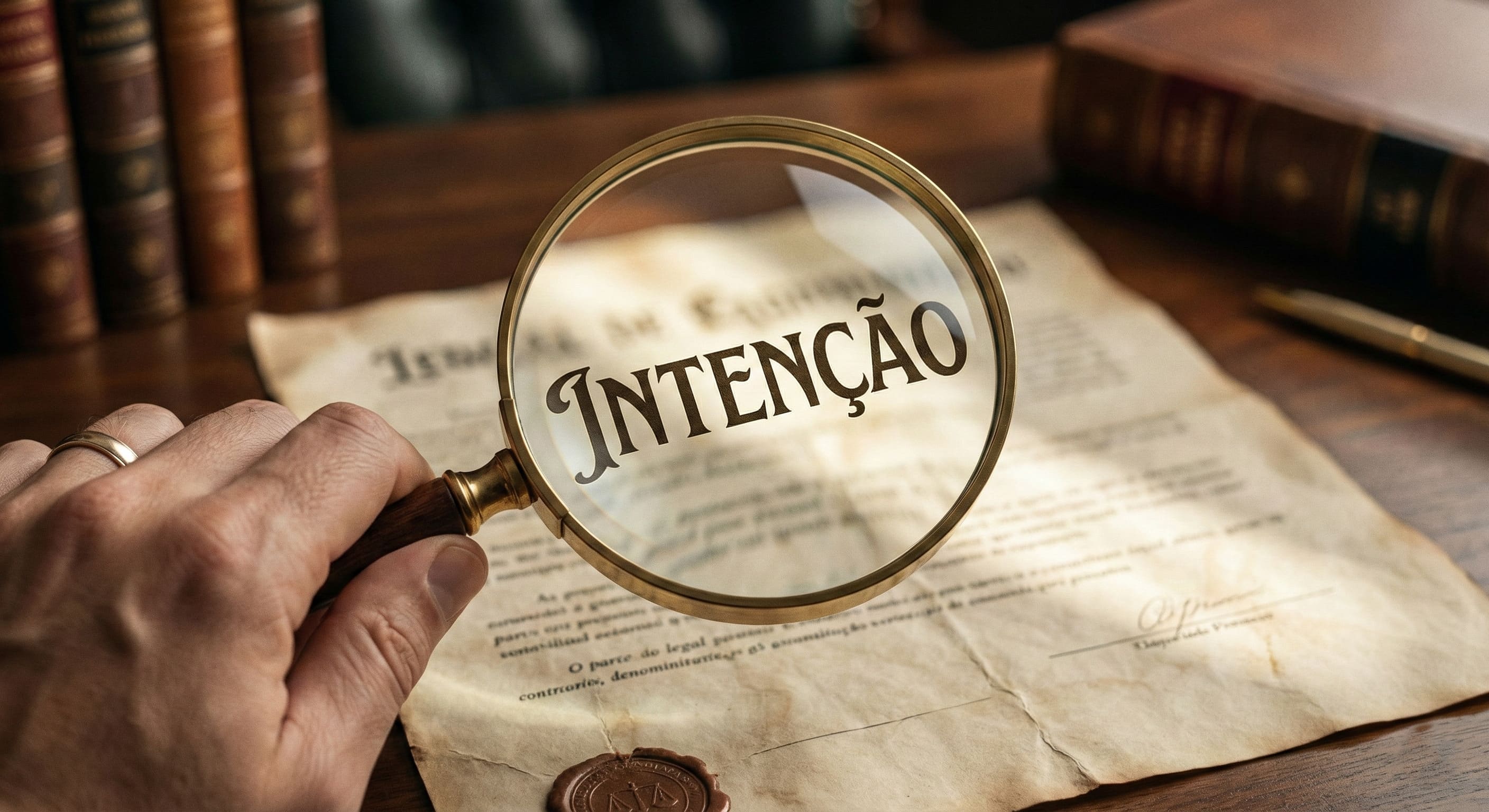 • Alt Text: Pessoa analisando documento com lupa focando na intenção do agente, representando o dolo específico na improbidade administrativa.