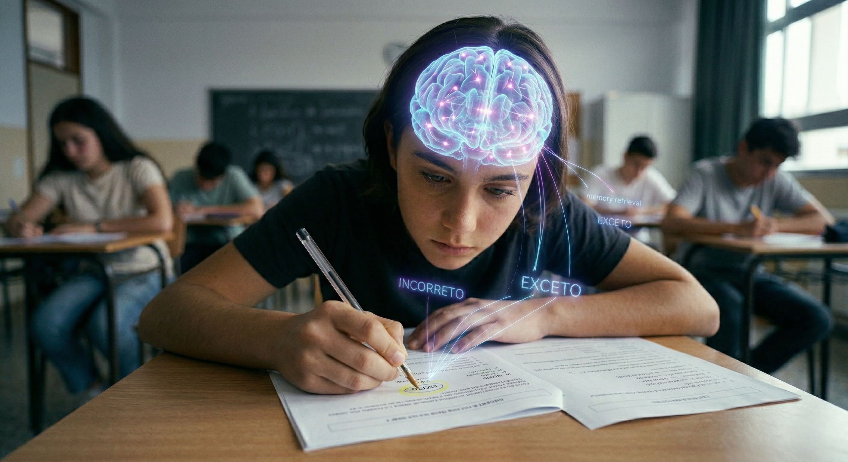 Em uma situação normal e relaxada, o seu córtex pré-frontal conseguiria facilmente controlar esse ímpeto, lembrando-o de que a questão pede o erro. Contudo, no dia da prova, você está cansado, ansioso e sob imensa pressão. A tensão diminui a eficiência do córtex pré-frontal. Como resultado, o cérebro "pula" a etapa da inibição. Você lê a alternativa "A", vê que ela traz um conceito verdadeiro e que você estudou, o seu sistema de recompensa comemora e você marca a resposta, caindo perfeitamente na armadilha desenhada pela banca.