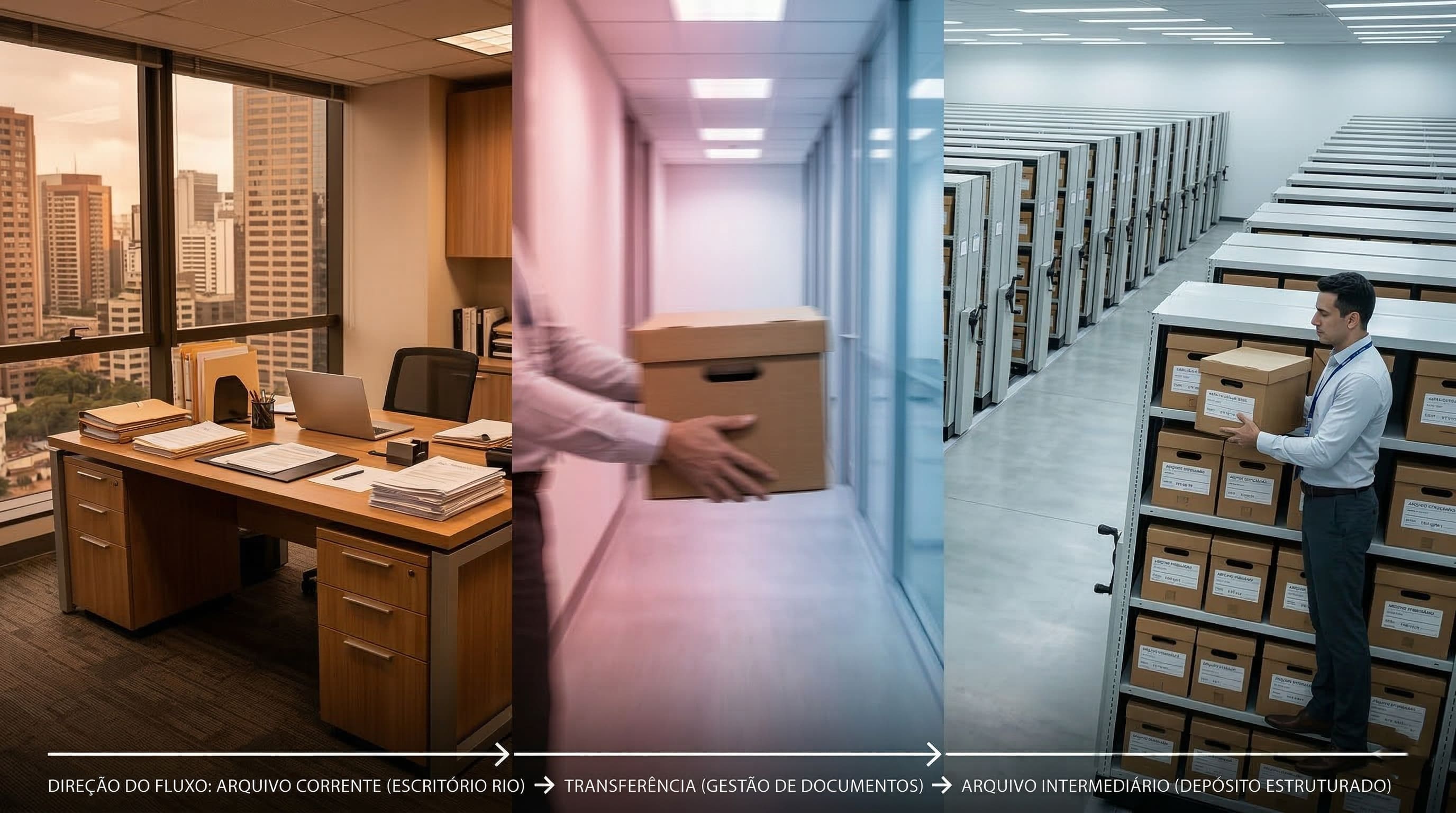 Quando pensamos na organização de documentos dentro de uma grande empresa ou em uma repartição pública, é muito comum que nossa mente crie apenas duas imagens extremas: ou pensamos naquelas pilhas de papéis bagunçados em cima da mesa de um funcionário que precisa deles todos os dias, ou imaginamos um porão escuro e histórico onde documentos seculares repousam para sempre. No entanto, a verdadeira inteligência da gestão da informação acontece exatamente no meio do caminho entre esses dois cenários.