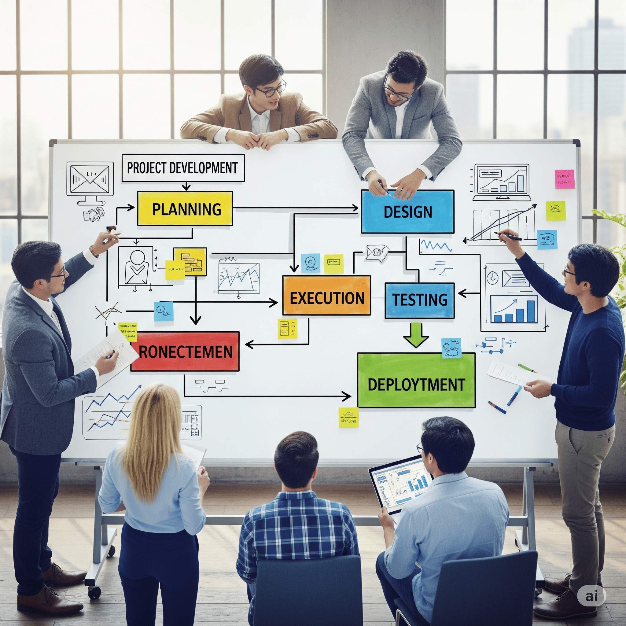 Equipe do Projeto: Um grupo de indivíduos que executa o trabalho do projeto para alcançar seus objetivos. O esforço coletivo é crucial para o sucesso.