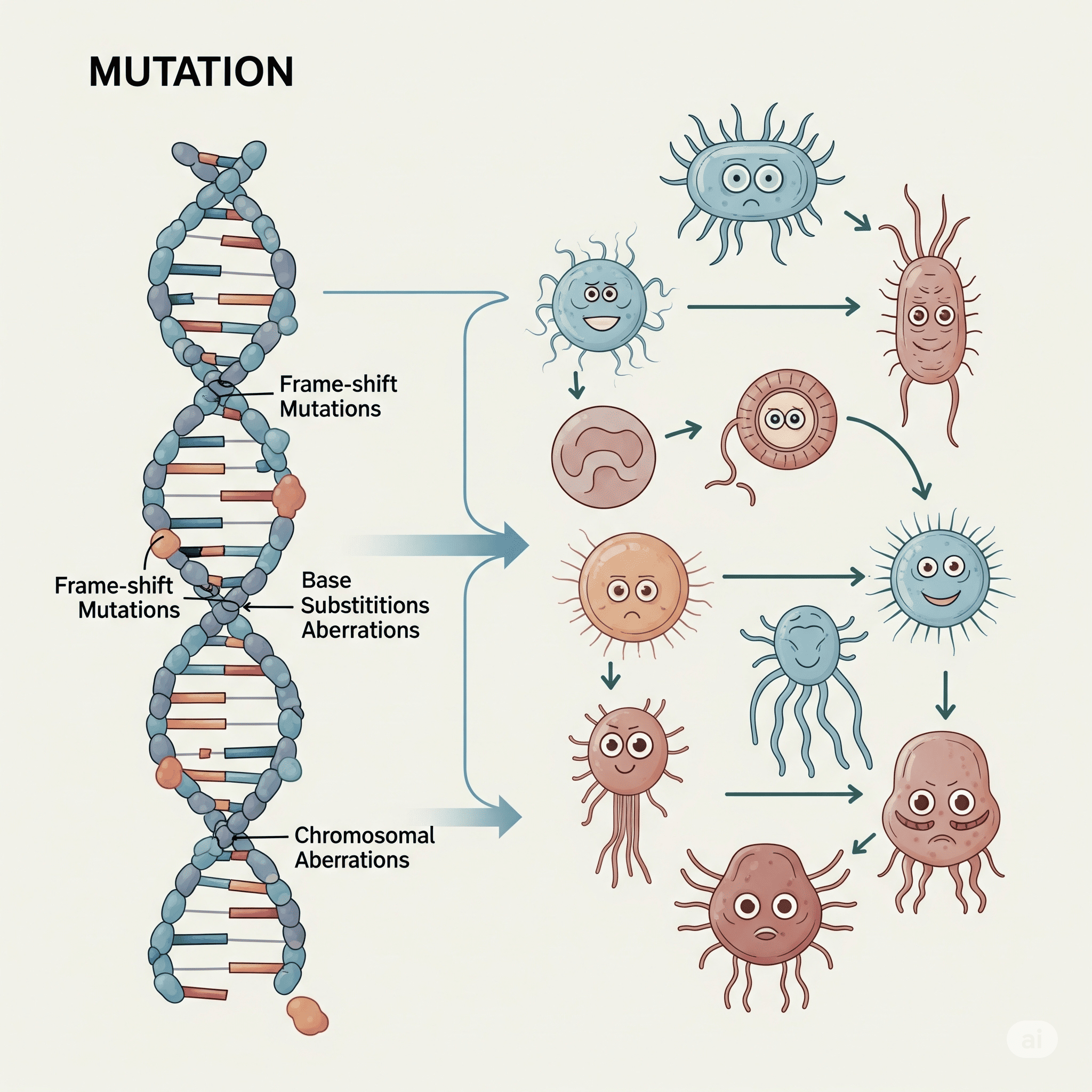 Imagine a vida como uma melodia complexa, onde cada organismo é uma composição única. O DNA, nosso material genético, é a partitura que define essa melodia. Mas, e se uma nota muda? Ou se novas notas são adicionadas ou removidas? E se a orquestra, ao invés de seguir à risca a partitura, improvisa e cria novas versões da canção? Essas "mudanças" e "improvisações" são o que chamamos de mutações e recombinações genéticas, os principais motores da variabilidade genética.