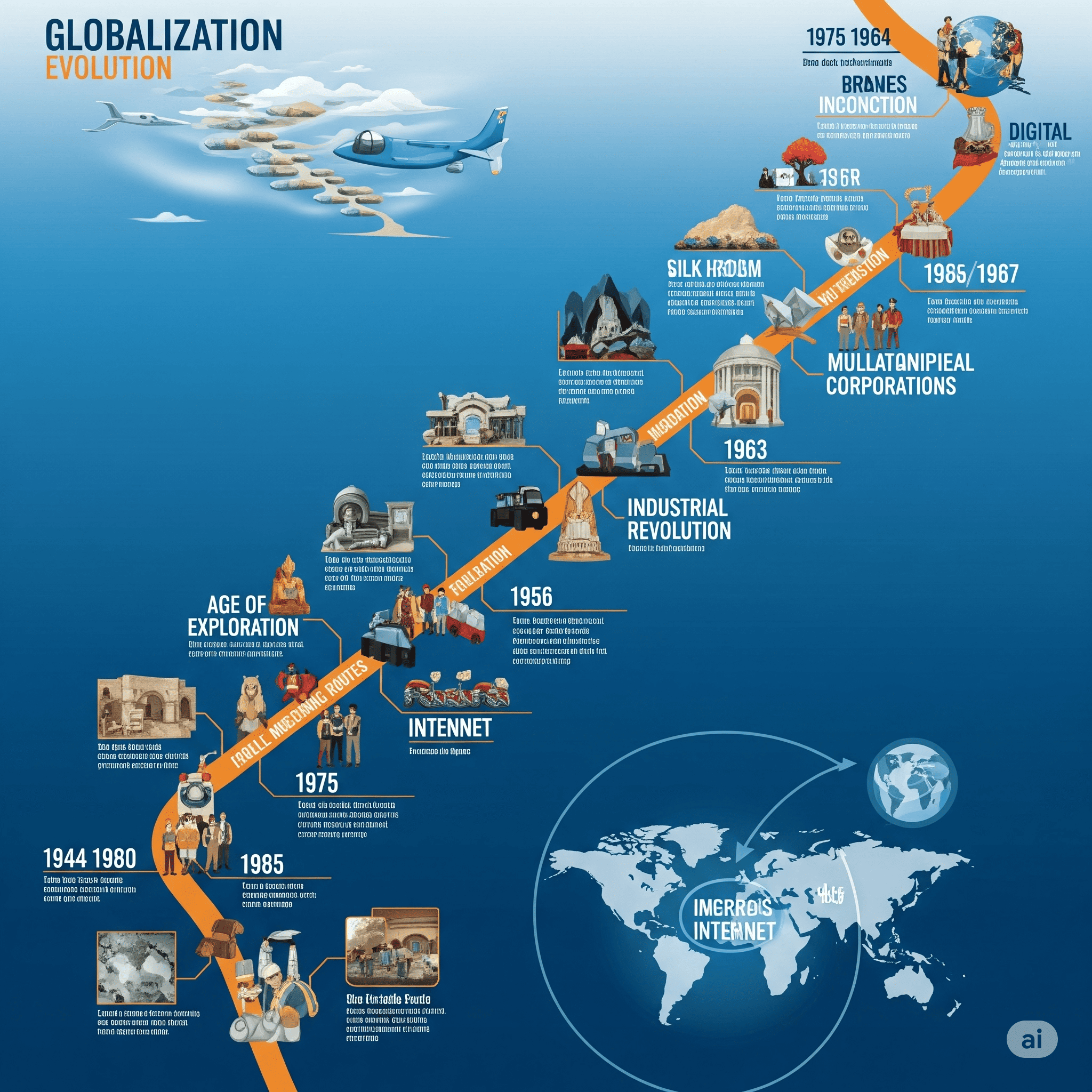 Para compreender a evolução da globalização, é tradicionalmente dividida em quatro grandes fases, cada uma marcada por avanços tecnológicos e mudanças socioeconômicas significativas.
