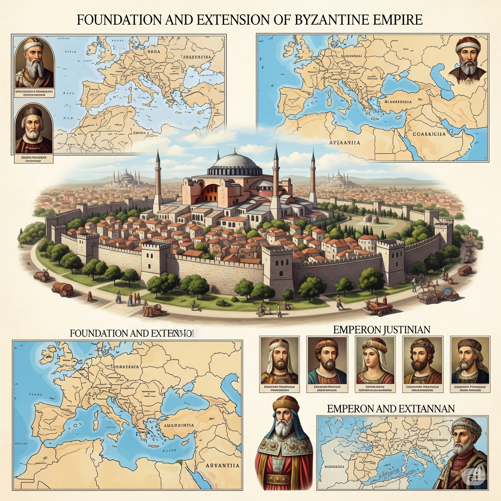 Grandes Edifícios e Obras Públicas: Justiniano também se preocupou com a infraestrutura e a cultura de Constantinopla.