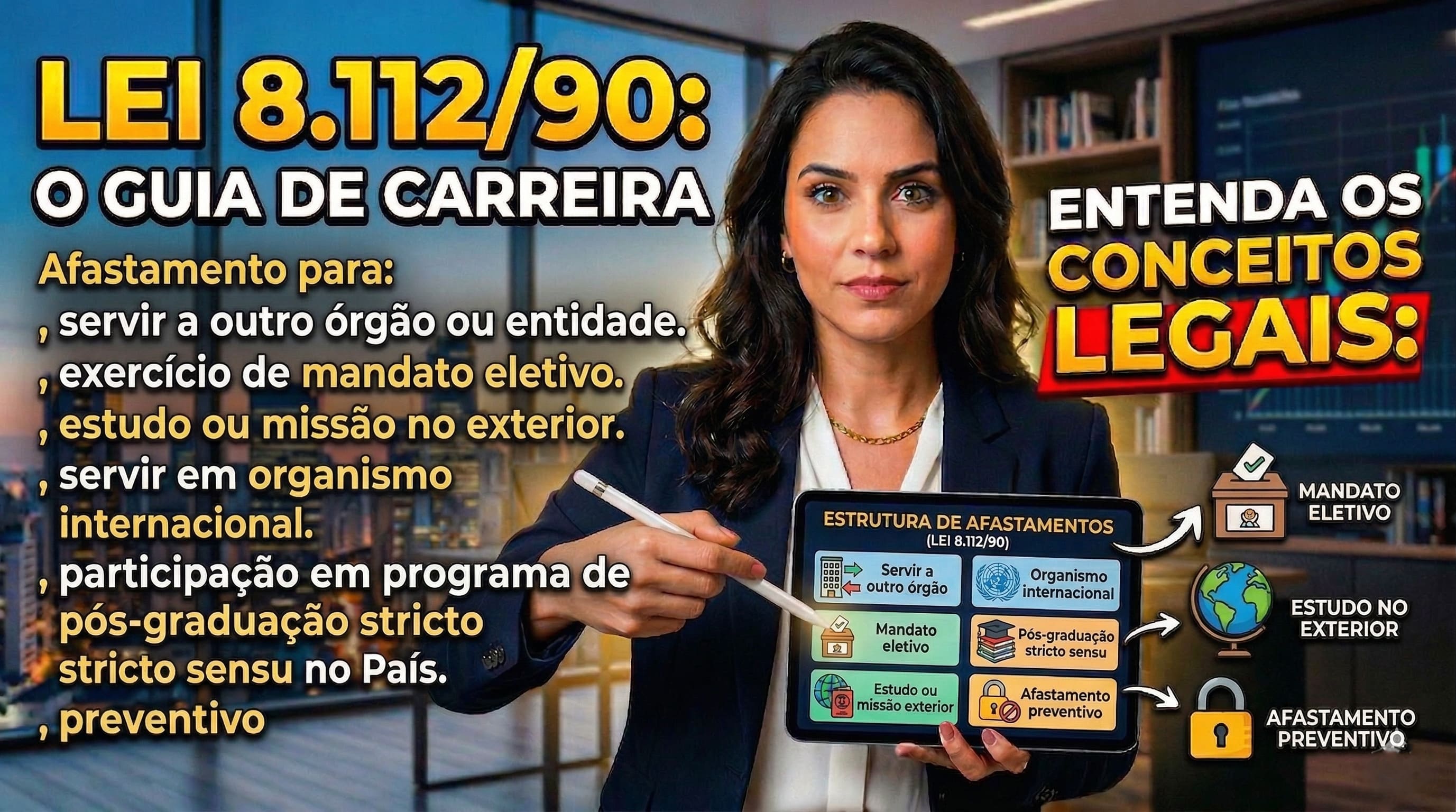 Neste guia, vamos mergulhar de forma detalhada e com linguagem simples nas engrenagens das ausências legais. Vamos explorar o Afastamento para servir a outro órgão ou entidade, para exercício de mandato eletivo, para estudo ou missão no exterior, para servir em organismo internacional, para participação em programa de pós-graduação stricto sensu no País, e, por fim, daremos um pulo no regime disciplinar para entender o temido, porém protetivo, Afastamento preventivo.